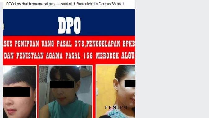 "Hasil penyelidikan, informasi itu Hoax. Hasil koordinasi dengan Densus 88 tidak ada DPO atas nama Sri Pujiati yang seperti di beritakan di Medos," Cipto menjelaskan, Kamis, 16 Agustus 2018.