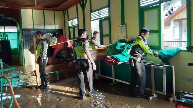 Banjir bandang di Solok dilaporkan surut sekitar pukul 04.00 WIB. Petugas polisi dengan water canon membantu siswa membersihkan sisa lumpur di pondok pesantren dan kediaman warga sekitar.