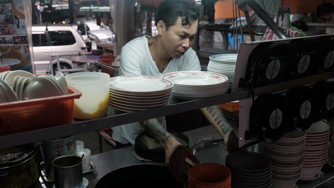 Mantan gangster Taiwan, Yen Wei-shun menyiapkan mi di kedai usaha keluarganya di pasar tradisional New Taipei City, 4 September 2018. Selain dijual, Yen bersama sang ibu membuat mi gratis yang dibagikan kepada orang tak mampu. (SAM YEH/AFP)