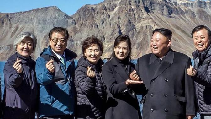 Korea Herald melaporkan, sebagaimana dikutip dari The Guardian pada Senin (24/9/2018), Kim Jong-un terlihat meniru isyarat populer itu ketika berfoto dengan Presiden Korsel Moon Jae-in di Gunung Paektu pada Jumat, 21 September 2018.