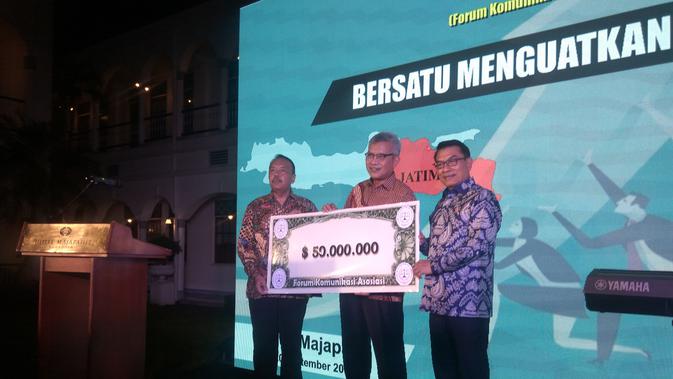 Liputan6.com, Surabaya - Forum Komunikasi Asosiasi Pengusaha (Forkas) Jawa Timur (Jatim) bersama Bank Indonesia menggelar acara Bersatu Menguatkan Rupiah. Sejumlah pengusaha di Jatim tersebut menjual 50 juta dolar Amerika Serikat (AS), karena nilai tukar rupiah saat ini berada pada level Rp 14.845 per dolar AS atau melemah 8,6 persen sejak awal tahun.