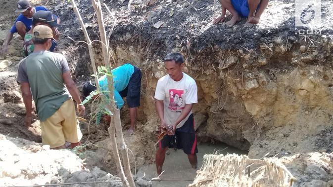 "Berhari-hari pencarian dilakukan. Akhirnya ada petunjuk dari pawang kami agar warga mencoba menggali tanah bebatuan," kata Hadiyanto.