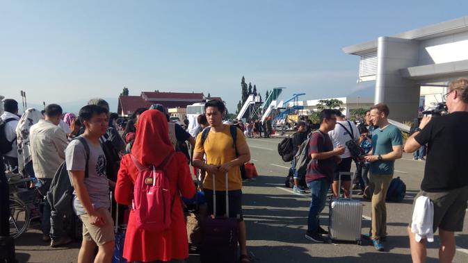 Liputan6.com, Palu - Kisah pilu dialami lima warga Tuban, Jawa Timur saat gempa dan tsunami Palu, Sulawesi Tengah. Setelah gagal terbang menggunakan pesawat Hercules untuk bisa keluar Kota Palu, kelima pemuda yaitu Imam Sholihudin, Bandar Si, Agus Susanto, Sofa, Sunarto harus bertahan hidup di bandara Mutiara Sis Al Jufri dengan perbekalan seadanya.