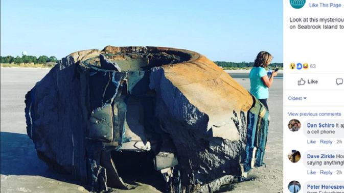 "Saya melihatnya pagi ini," kata Jennifer Passantino di halaman Facebook Kiawah Conservancy. "Saya berasumsi itu pelampung, tetapi bisa juga serpihan pesawat alien angkasa luar."