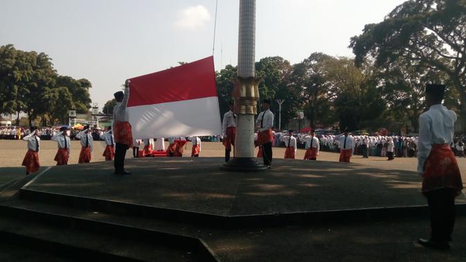 Didapuk menjadi ketua Pimpinan upacara ketua Majelis Ulama Indonesia (MUI) Garut KH Sirojul Munir, ribuan santri yang berasal dari pondok pesantren se-Kabupaten Garut, nampak khidmat menggunakan stelan bawahan sarung saat melaksanakan acara upacara tersebut.