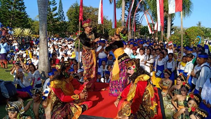 Liputan6.com, Denpasar - Memperingati momentum Sumpah Pemuda tahun 2018, Pemkab Karangasem menggelar pentas Genjek Kolosal diikuti 18.012 peserta di Taman Ujung Karangasem, Minggu 28 Oktober 2018.