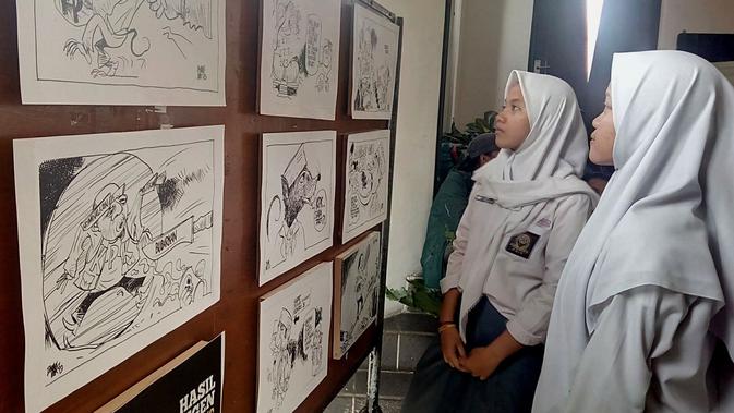 Pengunjung pameran juga dari beragam latar belakang. Tak hanya masyarakat umum, tapi juga mahasiswa sampai pelajar. Pengunjung dari kalangan dunia pendidikan tertarik dengan kritik sosial dengan media kartun.