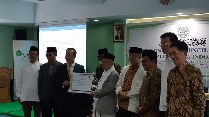 Pada Selasa 9 Oktober 2018, Kepala TETO --dubes de facto Taiwan untuk Indonesia-- John Chen, menyerahkan secara simbolis dana bantuan kemanusiaan untuk korban gempa-tsunami Sulawesi Tengah kepada Ketua MUI KH Ma'ruf Amin di Kantor Pusat MUI di Jakarta.