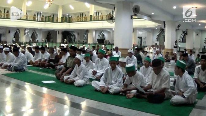Liputan6.com, Jakarta Ratusan santri dan pengasuh pondok pesantren, serta masyarakat kabupaten Pinrang, menggelar dzikir dan doa, jelang hari santri nasional, di Masjid Al Munawir, Pinrang, Sulawesi Selatan, Minggu malam, 21 oktober 2018.