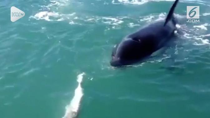 Liputan6.com, Jakarta Nelayan ini hanya mencoba menangkap ikan halibut, tetapi terkejut ketika dia menangkap ikan yang jauh lebih besar. Ikan paus pembunuh tepatnya. Sepertinya paus dan nelayan ingin makan halibut, tetapi paus pembunuh tiba di sana lebih dulu.