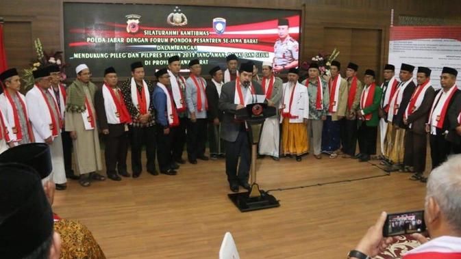 Liputan6.com, Jakarta Polda Jabar menggelar Silaturahmi Kamtibnas bersama Forum Pondok Pesantren se-Jawa Barat. Acara yang digelar di Aula Muryono, Polda Jabar, Selasa (27/11/2018) kemarin itu bertujuan menciptakan Pemilu 2019 yang damai dan sejuk.