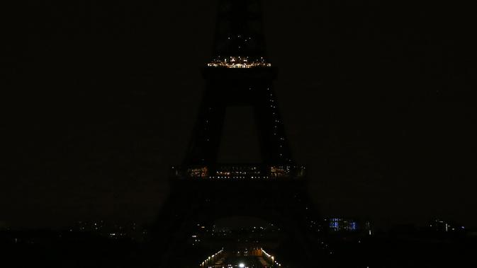 Liputan6.com, Paris - Lampu-lampu di sekitar Menara Eiffel di Paris pada Kamis 1 November 2018 dimatikan. Kondisi gelap gulita itu merupakan bagian dari demonstrasi untuk melindungi kebebasan pers setelah pembunuhan Jamal Khashoggi.