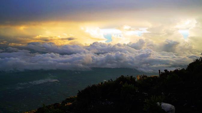 Jika cuaca sedang bagus, saat pagi hari di tempat ini akan terlihat karpet awan yang bergerak terus seiring sinar matahari yang mulai keluar.