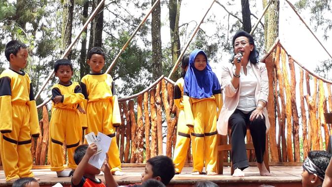 Liputan6.com, Yogyakarta - Ratu Jogja yang merupakan permaisuri Sultan HB X, GKR Hemas meluangkan waktunya untuk mendongeng di hadapan ratusan anak SD dan orangtua di panggung terbuka hutan Pinus Mangunan, Imogiri, Bantul, Minggu 11 November 2018.