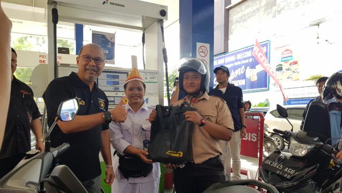 Santanu menyebut, konsumen beruntung yang melakukan pengisian bahan bakar mendapatkan hadiah menarik serta potongan harga 50 persen bagi konsumen Pertamax Turbo yang bertransaksi di SPBU Singapore Station, Jalan Adam Malik dan Jalan Brigjen Katamso menggunakan kartu kredit BCA.