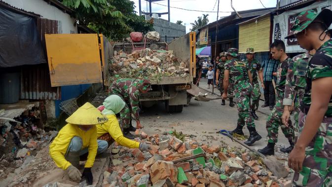 Puluhan prajurit dari Artileri Pertahanan Udara (Arhanud) juga terlihat turut membersihkan bongkahan tembok besar. Semuanya gotong-royong agar jalan yang diberi garis polisi bisa dilalui masyarakat lagi.