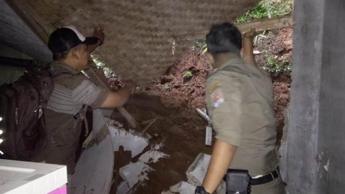 Mendadak, gemuruh longsor terjadi di belakang rumah Rastono (40), warga RT 05/9 desa ini. longsor menerjang bagian belakang rumah Rastono dan merobohkan tembok belakang.