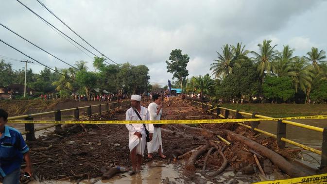 "Tim SAR bersama Polri dibantu masyarakat masih melaksanakan evakuasi membersihkan jembatan dengan memotong kayu dan membersihkan lumpur yang menutup jembatan dan jalan," kata, Minggu 23 Desember 2018.