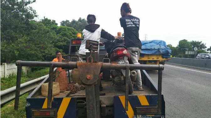 Liputan6.com, Purwakarta - Dua pemuda pengendara sepeda motor diamankan pihak kepolisian dari Petugas Jalan Raya (PJR) lantaran kedapatan mengendarai sepeda motor di jalan Tol Cipularang, pada Selasa, 11 Desember 2018, sore.