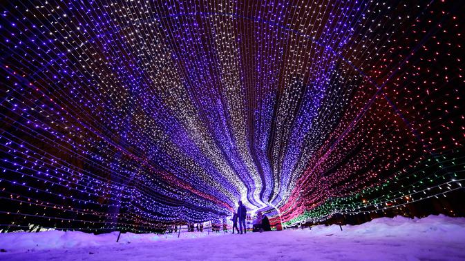 Sejumlah pengunjung berdatangan untuk menikmati pameran cahaya lampu yang dipasang di seluruh taman di Minsk, Belarus from Berita Internasional, Sains, Feature, Kisah Inspiratif, Unik, dan Menarik Liputan6 kalo berita gak lengkap buka link di samping http://bit.ly/2s0GqIs