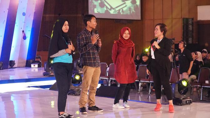 Liputan6.com, Bandung - Direktur Progamming SCM Harsiwi Achmad memberikan materi tentang dunia pertelevisian kepada ratusan peserta Emtek Goes To Campus (EGTC) 2018 Bandung di Graha Sanusi Hardjadinata, Universitas Padjajdaran, Kota Bandung, Kamis (6/12/2018). EGTC 2018 memasuki penyelenggaraan hari kedua atau terakhir.