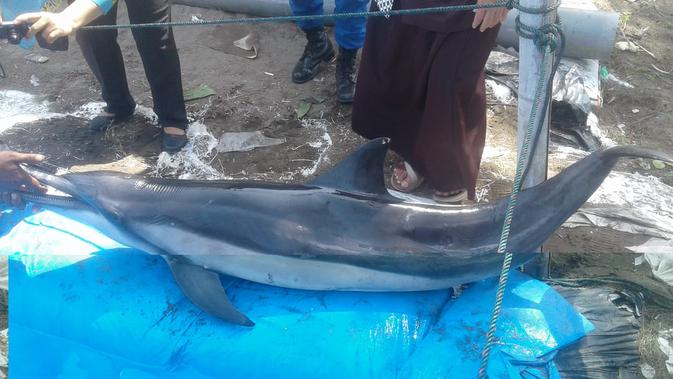 Rabu, warga bersama relawan dan petugas BKSDA mengubur bangkai lumba-lumba ini di pantai. Hal itu dilakukan untuk mengantisipasi mewabahnya penyakit Zoonosis.