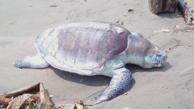 Bangkai penyu ditemukan di kawasan pantai wisata Kulon Progo, Daerah Istimewa Yogyakarta. Sampah plastik diduga jadi penyebab kematiannya.