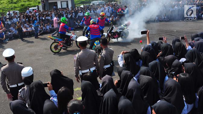 Polres Semarang menggelar Millenial Road Safety Festival (MRSF) 2019 di Halaman SMK 1 Bawen, Semarang, Jumat (1/2). Kegiatan ini bentuk kepedulian kepolisian pada kaum millennial yang berusia 17-35 tahun dalam tertib berlalu lintas. (Liputan6.com/Gholib)