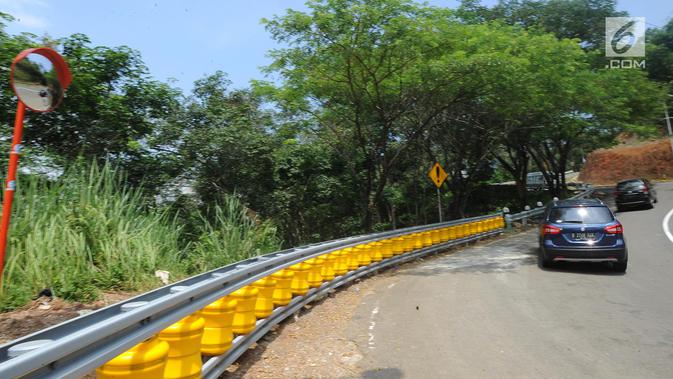 Teknologi roller barrier terpasang di tanjakan letter S Kampung Bantarselang, Kecamatan Cikidang, Kabupaten Sukabumi, Minggu (6/1). Roller barrier tersebut menjadi yang pertama di Jawa Barat, dan kedua di Indonesia setelah Aceh. (Merdeka.com/Arie Basuki)
