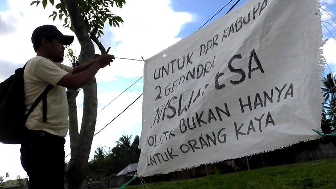 Tidak mau kalah dengan calon legislatif lain, ia pun memasang baliho karung bekas itu di seluruh titik yang menjadi wilayah daerah pemilihanya.