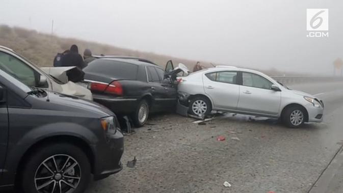 Liputan6.com, Jakarta Sebanyak 19 mobil mengalami kecelakaan beruntun usai jalan raya di California Selatan diselimuti kabut.