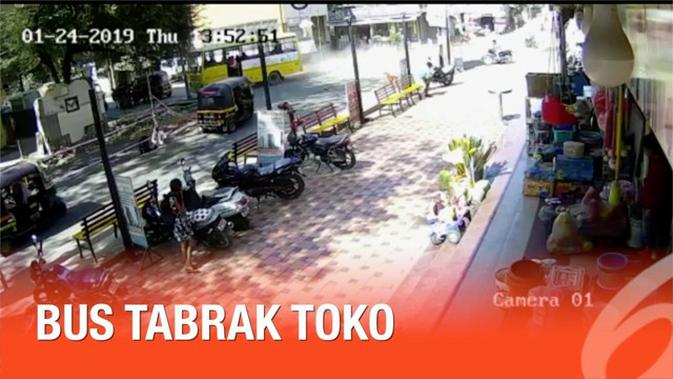 Liputan6.com, Jakarta Sebuah bus dengan kecepatan tinggi kehilangan kendali di jalanan. Akibatnya, bus menabrak sebuah toko di Badlapur Maharashtra, Mumbai, India.