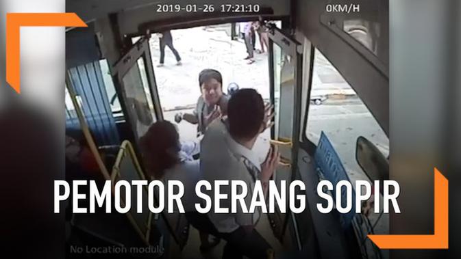 Liputan6.com, Jakarta Seorang pengendara sepeda motor tidak terima karena jalurnya diambil oleh bus. Ia pun berduel dengan pengemudi bus di tengah jalan.