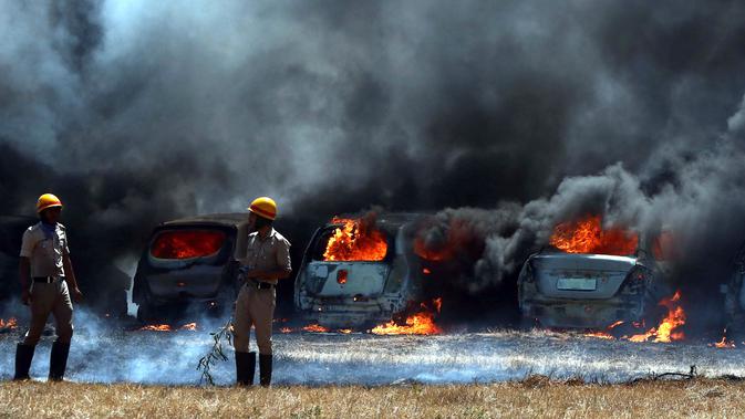 Rumput kering yang terbakar diduga menjadi penyebab kebakaran yang melahap sekitar 300 mobil di area parkir pameran dirgantara Aero India 2019, Bangalore, India. from Berita Internasional, Sains, Feature, Kisah Inspiratif, Unik, dan Menarik Liputan6 kalo berita gak lengkap buka link di samping https://ift.tt/2IyZKHX