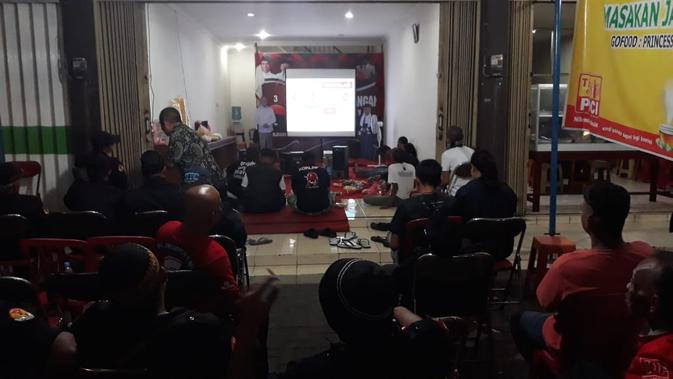 Pantauan Liputan6.com, Minggu (17/2/2019) malam, puluhan pendukung 01 berkumpul di posko pemenangan milik PDIP di Jalan Letjen Suprapto, Sumber, Banjarsari, Solo.