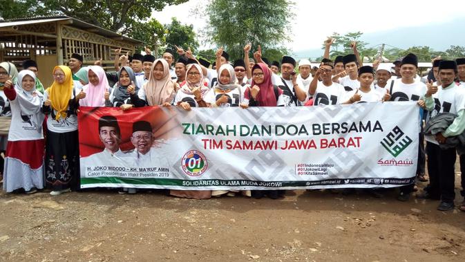 Liputan6.com, Garut - Relawan Solidaritas Ulama Muda Jokowi (Samawi) menggelar doa bersama untuk keselamatan bangsa di makam Syekh Ja'far Sidiq, Cibiuk, Garut, Jawa Barat kemarin.