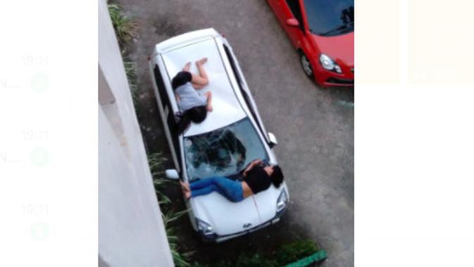 Liputan6.com, Makassar - Dua gadis cantik yang ditemukan pingsan di atas mobil usai terjatuh dari lantai tiga kost B17 di Kompleks Graha Modern Jaya, Makassar, Sulawesi Selatan ternyata sempat adu mulut.