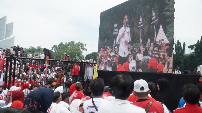 Liputan6.com, Bandung - Calon presiden nomor urut 01, Jokowi menghadiri acara deklarasi Alumni Jabar Ngahiji, Gebrakan Satu Jabar Bandung Ngahiji di Monumen Perjuangan Rakyat Jawa Barat, Jalan Dipatiukur, Minggu (10/3/2019).