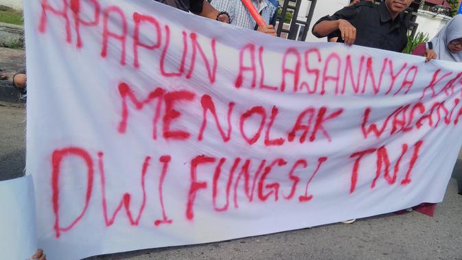 "Dwifungsi TNI dalam jabatan sipil mencederai cita-cita reformasi yang didengungkan lebih kurang 20 tahun silam. Kita juga meminta pelanggaran HAM di masa konflik Aceh diusut tuntas," sebut Ketua SMUR Aceh Barat, Masykur Nyak Di Jurong, kepada Liputan6.com, di sela aksi, Senin siang (18/3/2019).