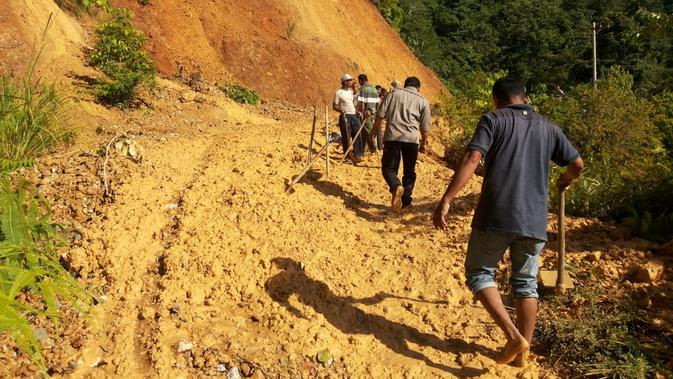 Selain itu, hujan deras menyebabkan tanah melunak lalu mengakibatkan longsor di sejumlah titik. Terdapat jalan yang tidak bisa dillalui karena terhalang batang kayu yang tumbang.