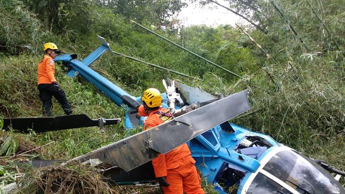 Liputan6.com, Bandung Sebuah helikopter yang mengangkut empat orang jatuh di kawasan kebun Kampung Peuteuy, Desa Jayaratu, Kecamatan Sariwangi, Kabupaten Tasikmalaya, Jawa Barat, Sabtu (16/3/2019) sekitar pukul 15.00 WIB tadi. Empat penumpang Helikopter BO-105 PK EAH itu berhasil dievakuasi dan dinyatakan selamat.