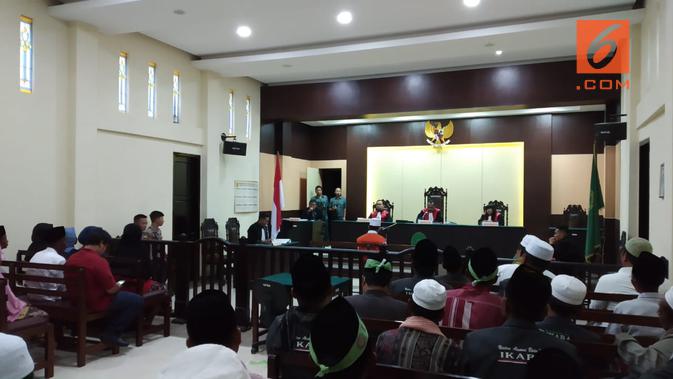 Liputan6.com, Sampang - Idris, terdakwa kasus pembunuhan Subaidi, Petugas Pemungutan Suara Kecamatan Sokobanah, dituntut pidana penjara seumur hidup oleh jaksa penuntut dalam persidangan di Pengadilan Negeri Sampang, Selasa, 12 Maret 2019.