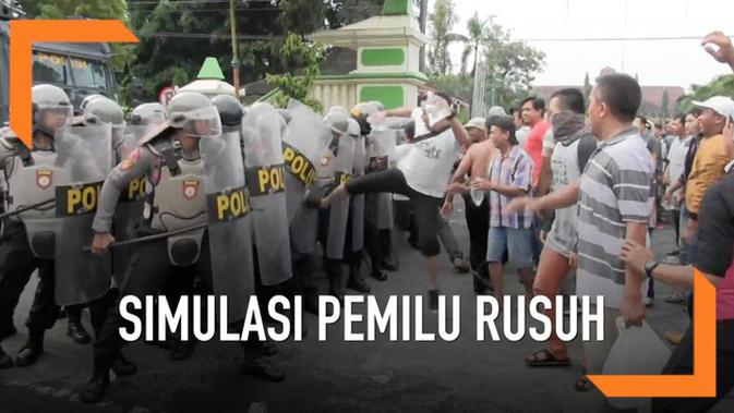 Liputan6.com, Jakarta Polres Tegal Jawa Tengah gelar simulasi penanganan jika pelaksanaan pemilu berakhir rusuh. Simulasi melibatkan water cannon dan anjing pelacak.