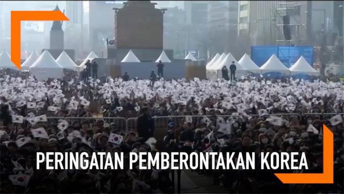 Liputan6.com, Jakarta Presiden Moon Jae-in memimpin upacara perayaan 100 tahun pemberontakan Korea Selatan. Acara ini dihadiri oleh ribuan warha Korsel.