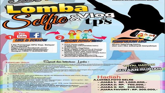 Salah satunya yang dilakukan oleh Komisi Pemilihan Umum (KPU) Kabupaten Kepulauan Selayar, Sulawesi Selatan (Sulsel). KPU menggelar perlombaan foto selfie dan video blog (vlog).