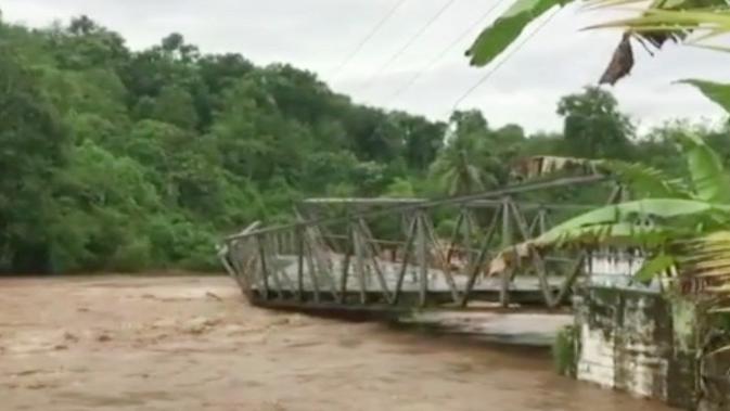 Liputan6.com, Palembang - Jembatan Ponton yang menjadi akses penghubung Provinsi Sumatera Selatan (Sumsel) ke Provinsi Bengkulu ambruk diterjang tingginya aliran air di Sungai Musi.