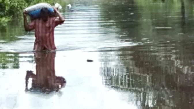 Liputan6.com, Aceh - Dua desa di Kecamatan Panga, Kabupaten Aceh Jaya terendam banjir. Ketinggian air Jumat sore (12/4/2019) mulai surut menjadi 30 centimeter.