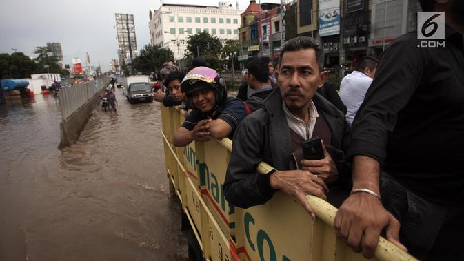 "Ketinggian banjir di sana seleher saya ini. Makanya semua warga kita evakuasi ke sini," kata Budi warga Jalan Sinhaji di lokasi banjir, Sabtu 14 April 2019 malam, dilansir Antara.