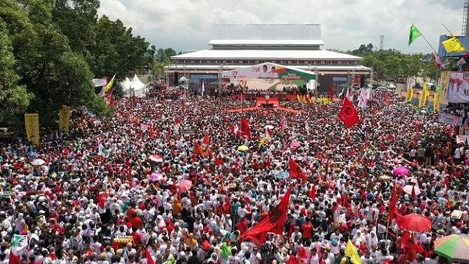 Liputan6.com, Jakarta - Ribuan warga menyambut calon presiden nomor urut 01 Joko Widodo yang datang untuk melakukan kampanye rapat umum di GOR Satria, Purwokerto, Kabupaten Banyumas, Jawa Tengah.