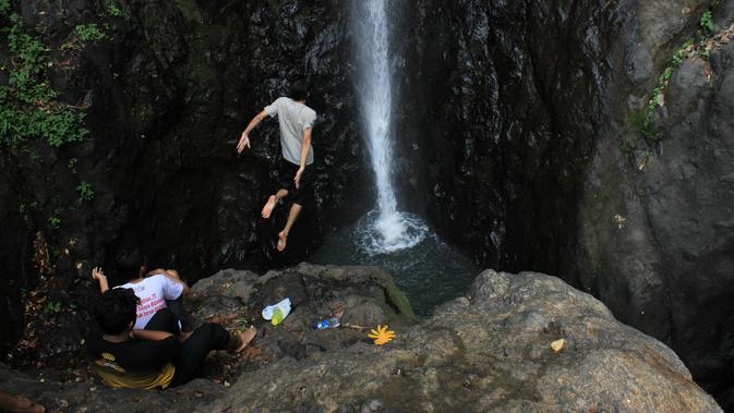 Liputan6.com, Majalengka - Dua buah kolam terbentuk secara alami sebagai penampung limpahan air dari Curug Baligo di Desa Padaherang, Kecamatan Sindangwangi, Kabupaten Majalengka, Jawa Barat.